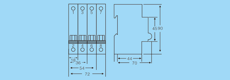 ◆ 斷路器外形為標準模數化結構,體積小重量輕;安裝部件采用金屬片和彈簧,可以安全牢固地卡裝在35mm的標準導軌上。