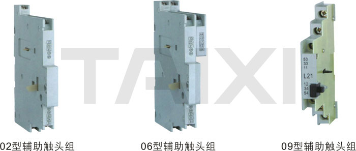 ● 輔助觸頭組由短路報警觸頭、過載報警觸頭以及一組常開常閉輔助觸頭構成,如02為2常開1常閉+1短路1過載; 06為4常開2常閉+1短路1過載;09為2常開1常閉。