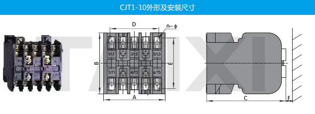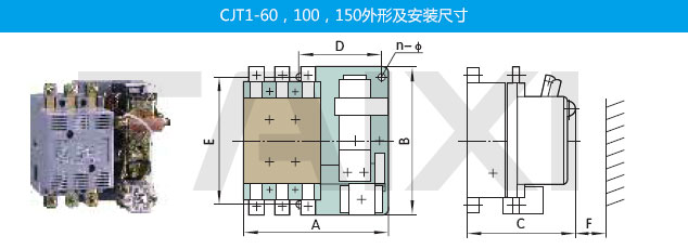 本接觸器的結構及安裝尺寸與CJ10相同。滅弧罩由耐弧塑料弧罩和鐵柵片組成,CJT1-60、100、150的底座用增強塑料制成。