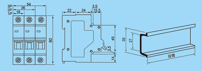 采用導線接線方式,最大可接25mm2圓銅導線。采用TH35-7.5型標準鋼安裝導軌進行安裝。