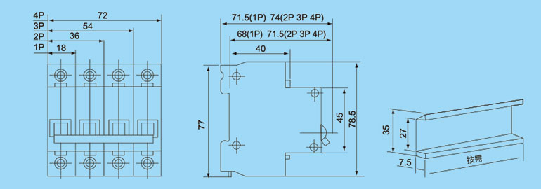 按極數分(POLE):1P.單極; 2P.二極; 3P.三極; 4P.四極。