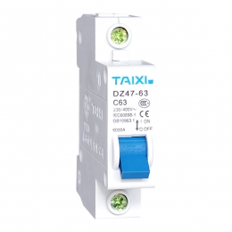DZ47電瓶車斷路器主要適用于交流50/60Hz,額定工作電壓為230V/400V及以下,額定電流至63A的電路中,該斷路器主要用于現代建筑物的電氣線路及設備的過載、短路保護,亦適用于線路的不頻繁操作及隔離。結構特征電瓶車斷路器由塑料外殼、操作機構、觸頭滅弧系統、脫扣機構等組成。外殼采用了高阻燃、高強度的特種塑料,抗沖擊能力強、重量輕。電瓶車斷路器操作機構的零件采用了高強塑料制品,在確保靈敏、可靠的同時獲得了最低的轉動慣量,使從短路故障開始到脫扣機構動作的時間很短。脫扣機構由雙金屬片過載反時限脫扣機構和短路瞬動電磁機構二部分組成。觸頭滅弧系統則采用特殊的導弧角和過道滅室,并具有顯著的限流特性。主要用于辦公樓,住宅和類似的建筑的照明、配電線路及設備的過載、短路保護、也可在正常情況下,作為線路不頻繁的轉換之用,該產品符合IEC60898和GB10963.1等標準的要求。泰西生產的DZ47高分斷小型斷路器(B型電瓶車斷路器)已經過國家CCC認證和CE認證。B型用于電瓶車保護;C型用于家居配電保護;D型用于電動機保護