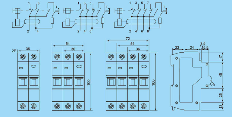 TXD7-63系列新型漏電斷路器(漏電保護(hù)開關(guān))是由漏電脫扣器附件和TXB7N-63斷路器結(jié)合縮小設(shè)計(jì)而成,2P/3P/4P漏電比普通的DZ47LE斷路器要窄很多,同時它保持了與TXB7N相同的時間-電流動作特性,其機(jī)械裝配,即可由企業(yè)在工廠完成,也可在現(xiàn)場進(jìn)行。漏電脫扣特性參數(shù)由工廠整定,用戶不可調(diào)整,也不能拆開漏電斷路器,以免影響性能。漏電斷路器有63A殼架等級電流,分別可接25mm2導(dǎo)線。在漏電斷路器上設(shè)有一個專門用來指示漏電動作的指示裝置,只有在指示裝置復(fù)位以后,漏電斷路器才能閉合。并配有帶自復(fù)式按鈕的試驗(yàn)裝置,按下時內(nèi)部線路產(chǎn)生一模擬剩余電流,使斷路器分?jǐn)唷T囼?yàn)裝置應(yīng)定期試驗(yàn),每月一次。