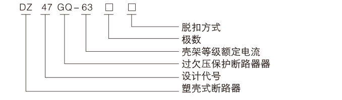 產品型號和名稱:如DZ47GQ-63過欠壓保護斷路器